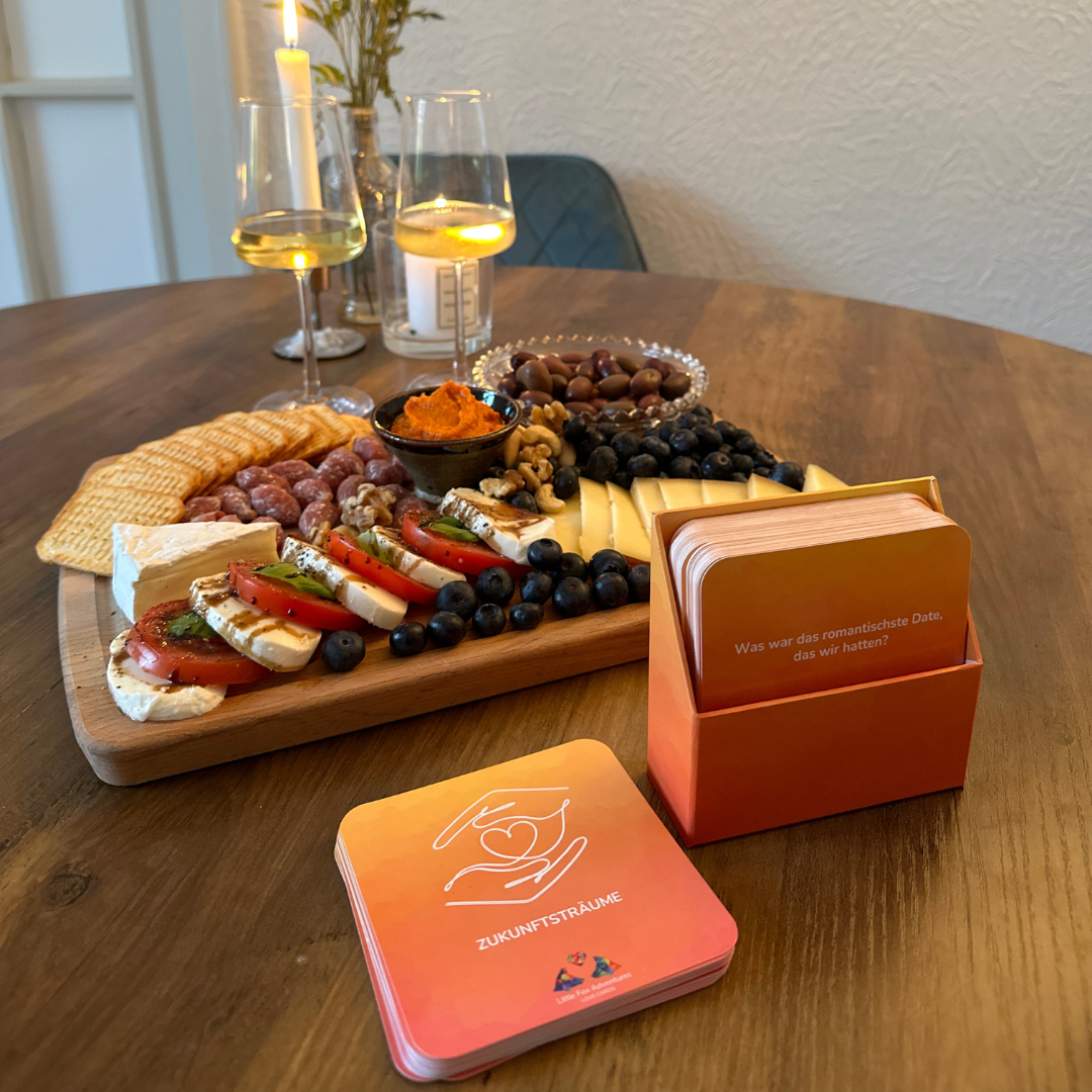 Die Love Cards begleiten euch mit 75 Fragen in fünf Kategorien – von gemeinsamen Erinnerungen bis zu persönlichen Einsichten. Jede Karte eröffnet neue Blickwinkel und bringt Leichtigkeit in eure Gespräche, egal ob beim Date, auf Reisen oder gemütlich zuhause.