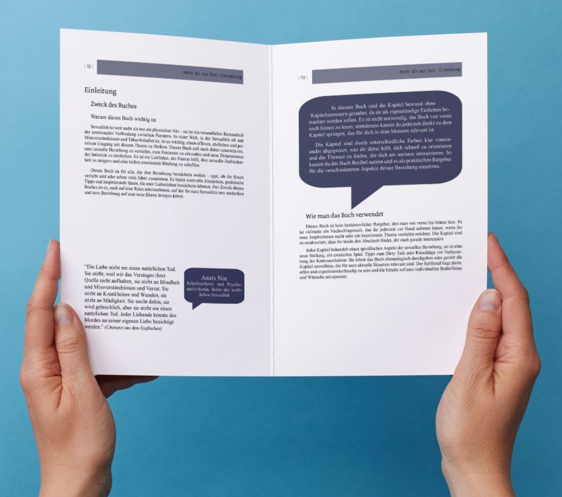 Das Buch „Mehr als nur Sex“ ist dein Begleiter auf dem Weg zu einer erfüllteren Beziehung und einem intensiveren Liebesleben. Mit wertvollen Tipps, inspirierenden Ideen und praktischen Übungen hilft es dir, die emotionale und körperliche Nähe zu deinem Partner zu vertiefen. Es bietet dir eine Vielzahl von erotischen Spielen, Kommunikationstechniken und Anregungen für neue Leidenschaft in eurer Beziehung.