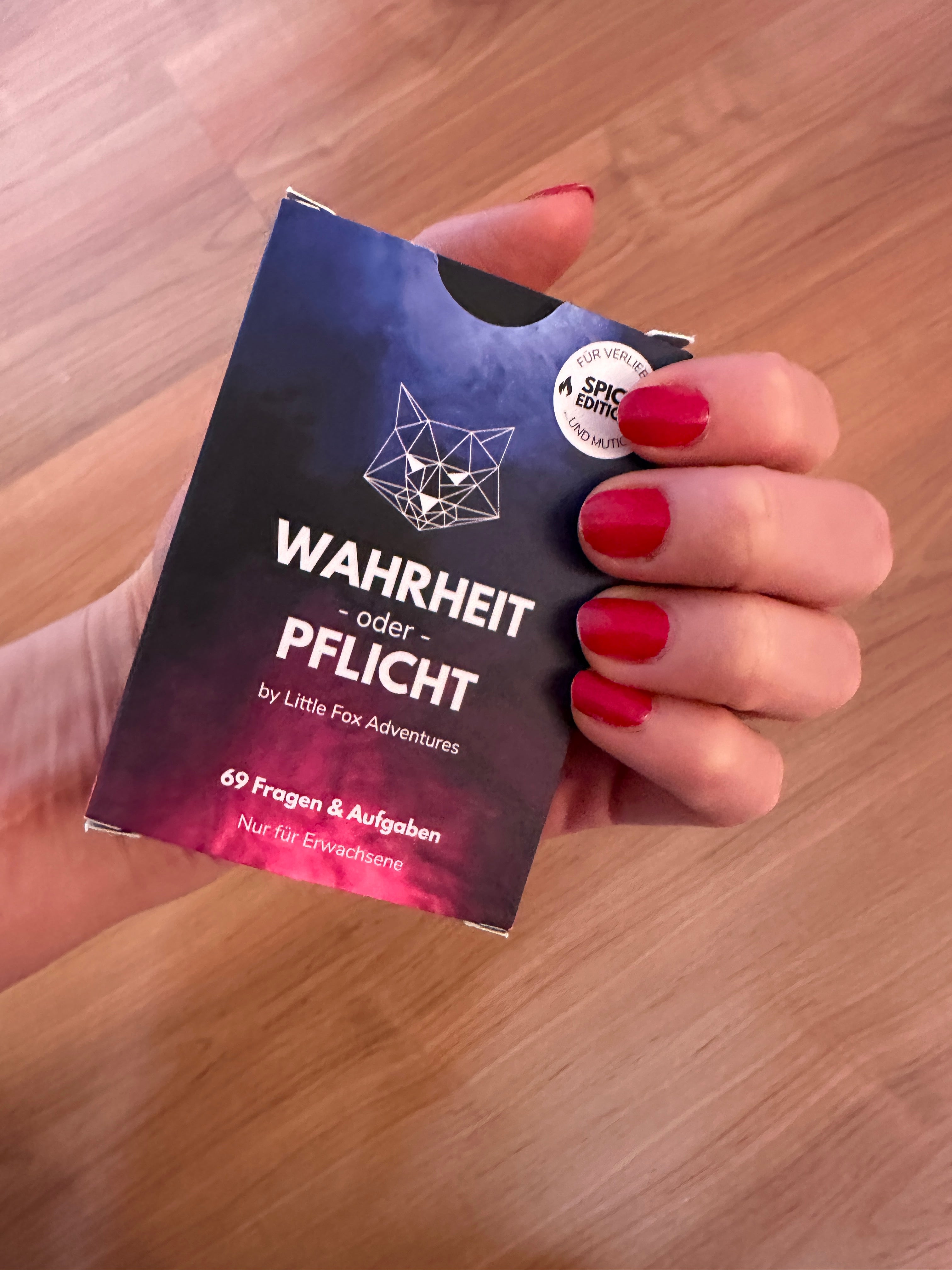 Die Spicy Edition bringt euch 69 Karten voller prickelnder Fragen und heißer Aufgaben – perfekt, um Grenzen zu testen, Tabus zu brechen und euer Liebesleben spielerisch zu würzen. Ob humorvoll, intim oder herausfordernd – jede Karte sorgt für Spannung, Spaß und neue Entdeckungen.